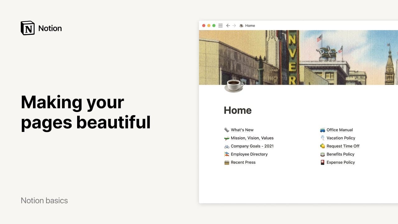 페이지 스타일 지정과 맞춤화Notion을 브랜드나 팀 스타일, 또는 내 취향에 맞게 수정하고 꾸미세요. 어떤 페이지나 워크스페이스도 자유롭게 커스텀할 수 있습니다. 사실 Notion은 어떻게 만들어도 아름답죠 🎨